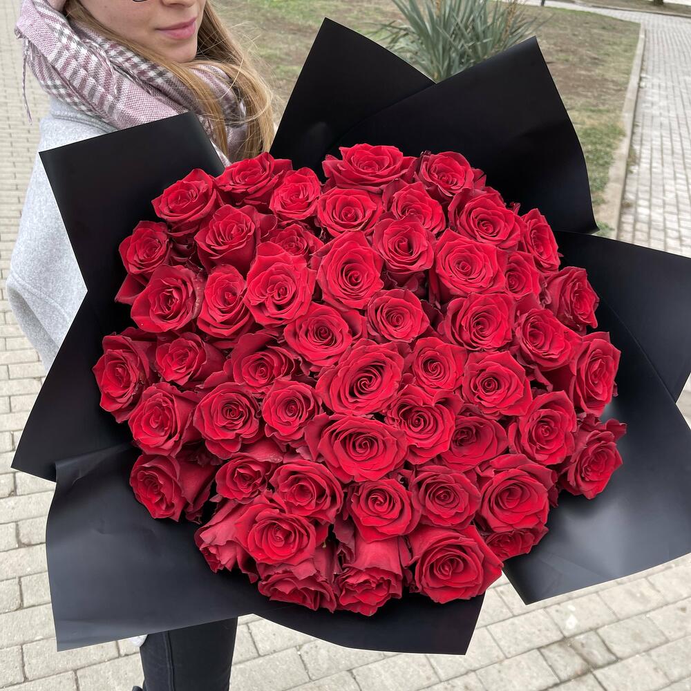 Почему бы не отправить этот великолепный монобукет вместе с романтическим подарком? Кроме того, элегантный черный дизайн обязательно произведет впечатление.